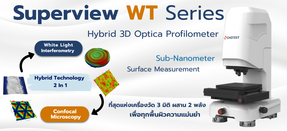 SuperView WT3000 Hybrid 3D Optical Profilometer คือโซลูชันระดับมืออาชีพสำหรับการวัดพื้นผิวความแม่นยำสูง ด้วยเทคโนโลยี Hybrid ที่รวม White Light Interferometry และ Confocal Microscopy ไว้ในเครื่องเดียว ช่วยให้การวิเคราะห์พื้นผิวมีความละเอียด ครบถ้วน และเชื่อถือได้ เหมาะสำหรับองค์กรที่ต้องการยกระดับมาตรฐานการตรวจวัดพื้นผิวในงานอุตสาหกรรมและงานวิจัย