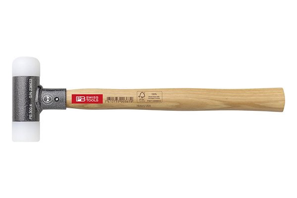 MALLETS Fuller, more precise strike PB Swiss Tools mallets are available with and without recoil. They are extremely rugged and unique in construction: The handles are made of FSC® certified hickory wood or of premium fiberglass. Their dimensions are adapted to the weights of the mallet heads. They are better balanced in the hand than normal standard shafts. Dead-blow mallets |